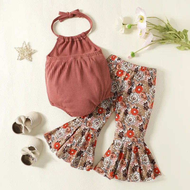 2 Piece Baby girl flower print sleeveless suit